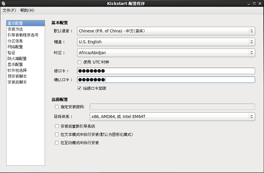 现在就可以在客户机上进行安装测试了,然而安装期间仍需手动选择语言、键盘类型、指定安装源等一系列交互操作,十分不方便,通过 kickstart 工具配置安装应答文件,自动完成安装中的各种设置,从而无需手动干预,提高网络装机效率。