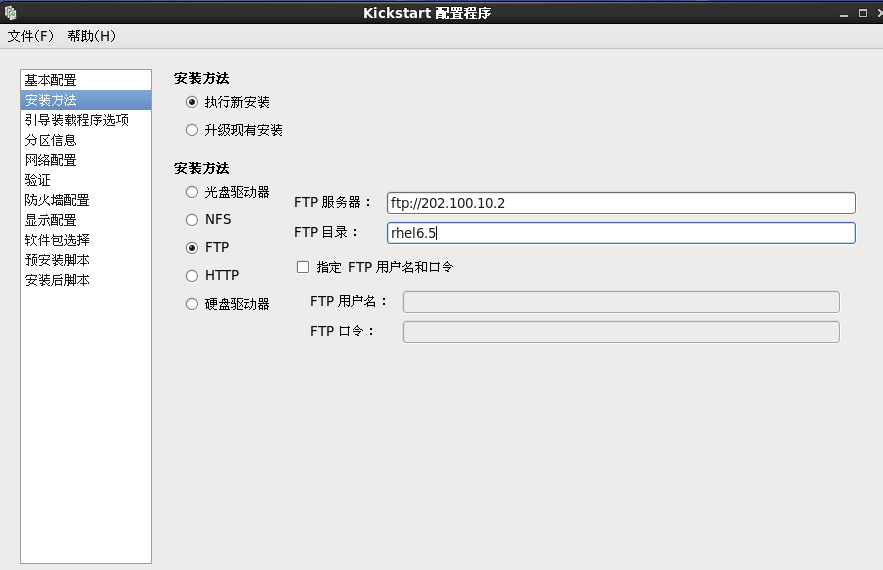 FTP服务器的作用:(1)存放Linux的安装镜像(2)存放ks.cfg文件(该文件是无人值守安装的核心文件)
