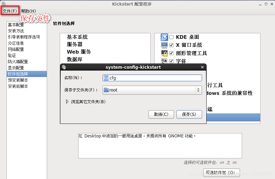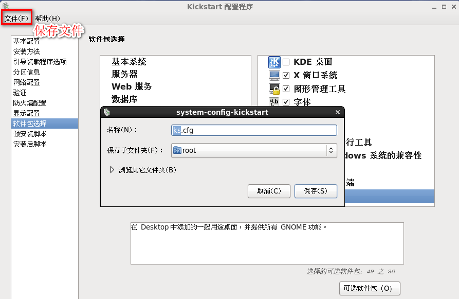 (5)保存自动应答文件:/root/ks.cfg
