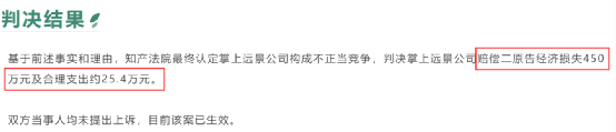因开发“微信自动抢红包”软件,被告掌上远景公司被判构成不正当竞争,赔偿二原告腾讯科技公司、腾讯计算机公司(简称腾讯公司)经济损失450万元及合理支出约25.4万元。据了解,双方当事人均未提出上诉,目前该案判决结果已生效。