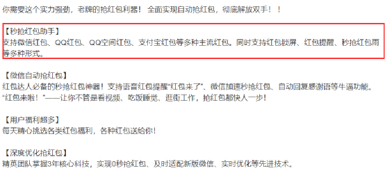 事实上,微信抢红包软件只是庞大外挂软件市场的个例之一。