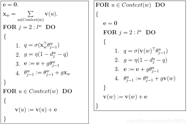 基于Negative Sampling的CBOW / Skip-gram模型伪代码