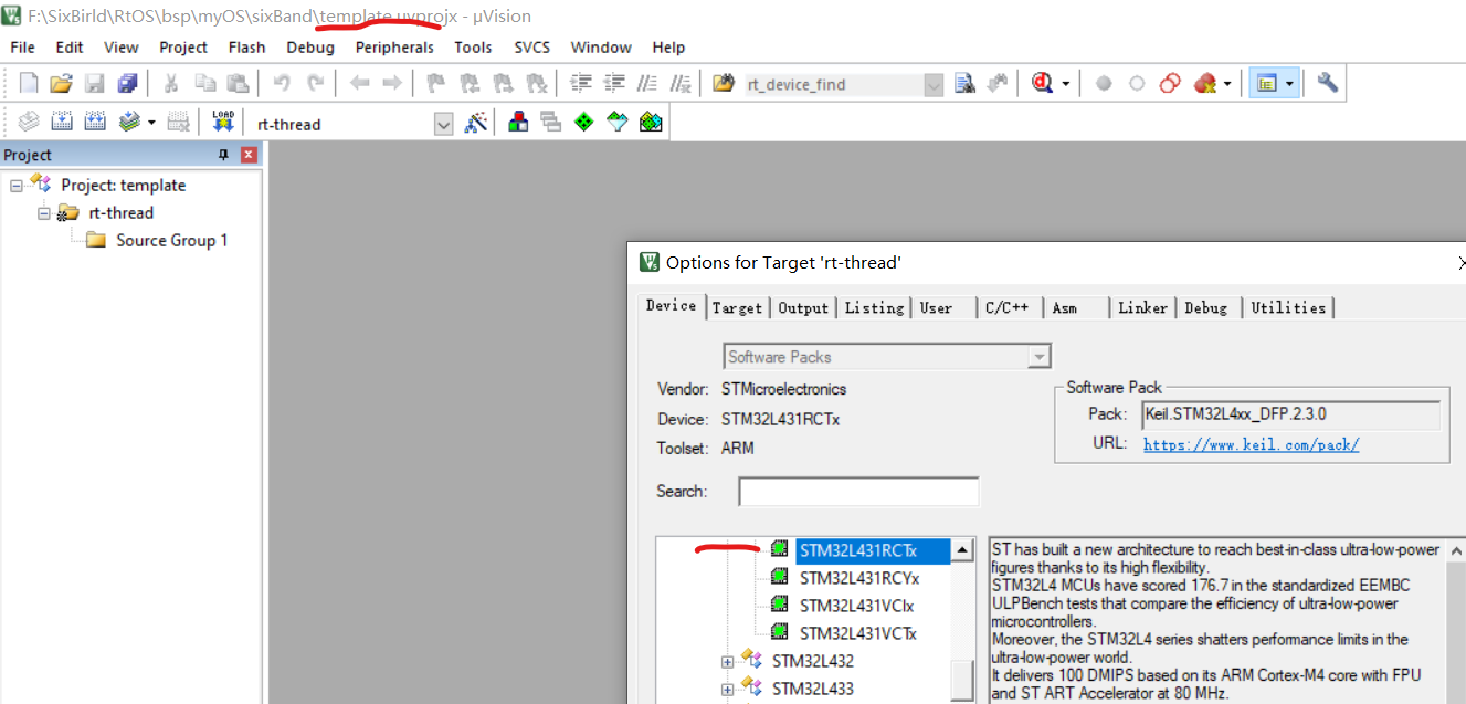 - 自己的工程是利用现成STM32L432 ST官方的DEMO来建的工程,每用ENV工具重新生成MDK5工程后,都会自动添加STM32L432 的启动文件,而自己所用的是STM32L431,这样就不太相符了?