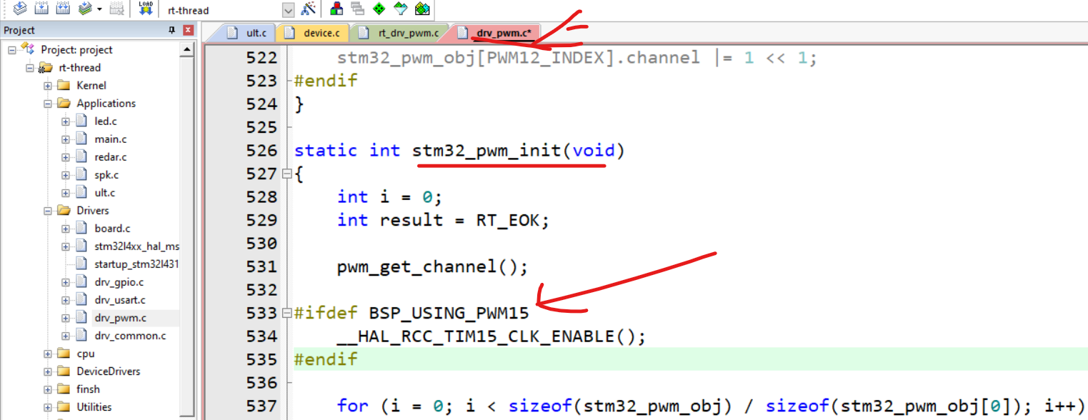 INIT_DEVICE_EXPORT(stm32_pwm_init);这个函数是自动初化的。