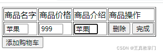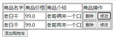 <button onclick="addRow()">添加购物车</button>