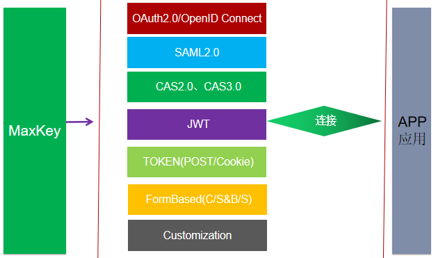 MaxKey(马克思的钥匙),寓意是最大钥匙, 是用户单点登录认证系统(Sigle Sign On System),支持OAuth 2.0/OpenID Connect、SAML 2.0、JWT、CAS等标准化的开放协议,提供简单、标准、安全和开放的用户身份认证和单点登录,包含用户认证、单点登录、资源管理、权限管理等。