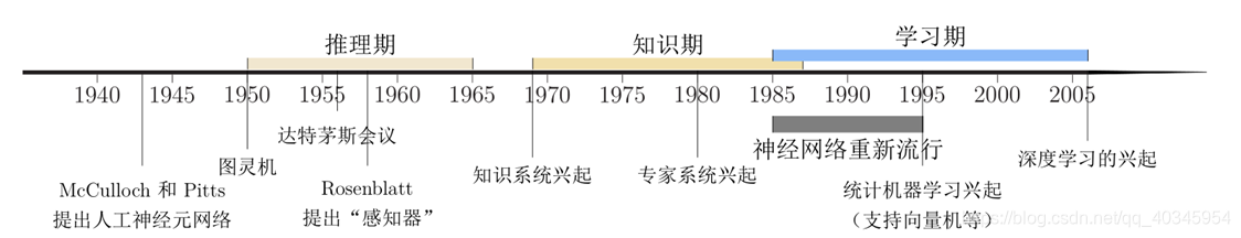 1.推理期(1956-60年代末):基于逻辑和事实规则,出现了几何定理证明器、语言翻译器等。