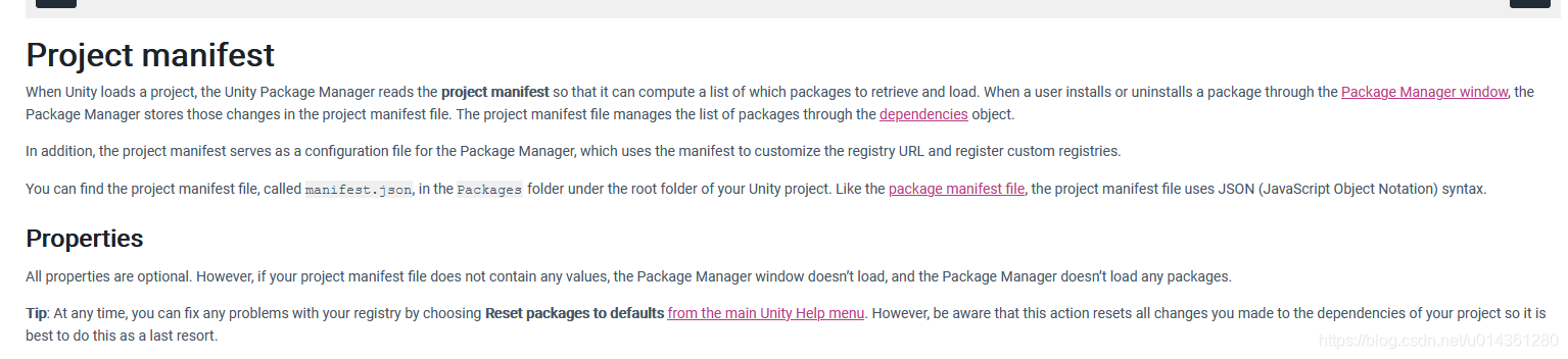 官方参考网址:https://docs.unity3d.com/Manual/upm-manifestPrj.html