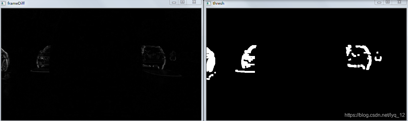 retVal, thresh = cv2.threshold(frameDiff, 25, 255, cv2.THRESH_BINARY)