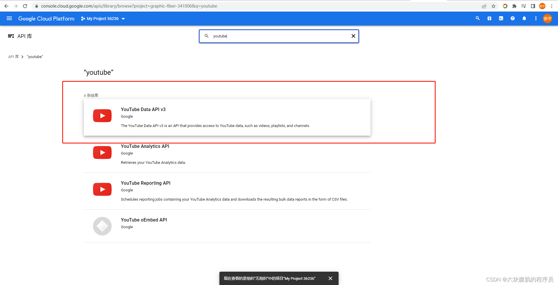 进入首页直接搜youtube,出现以下 结果,选择v3版本