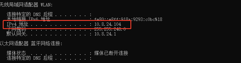 3、获取本机的ip地址,获取方法如下: