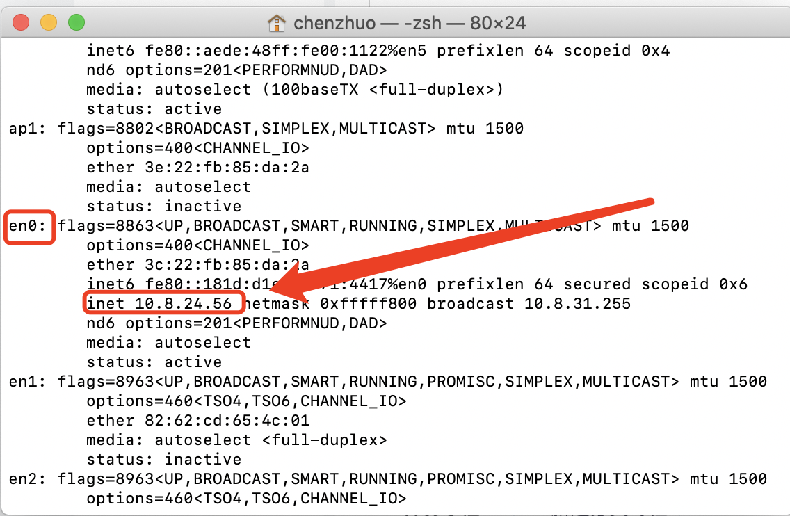 mac: 终端输入 ifconfig