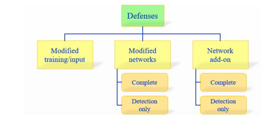 这些方向具体又可分为(a)完全抵抗(Complete),即能够分对对抗样本的原始类别(b)仅探测方法(Detection only),即只鉴别出哪些是对抗样本。具体分类如下图: