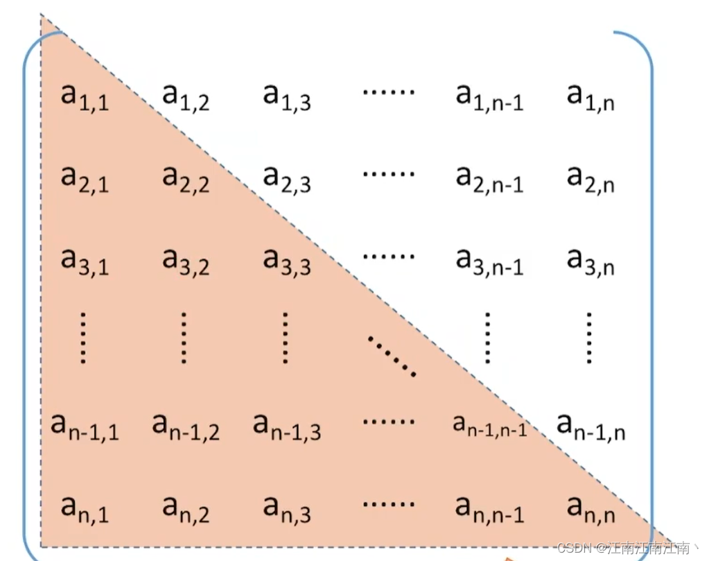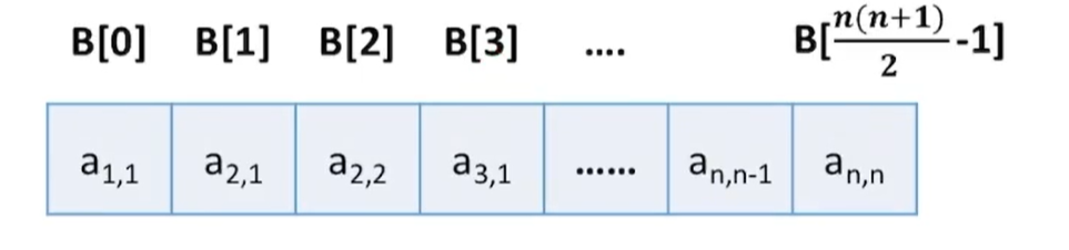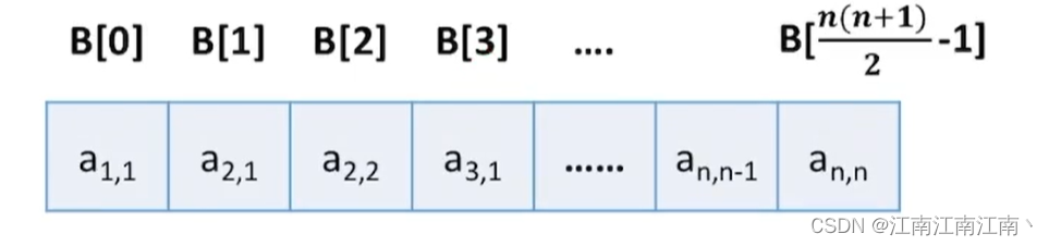 数组下标B[k]:k = 1 + 2 + …… + (i - 1) + j - 1 (-1是因为数组下标从0开始)
