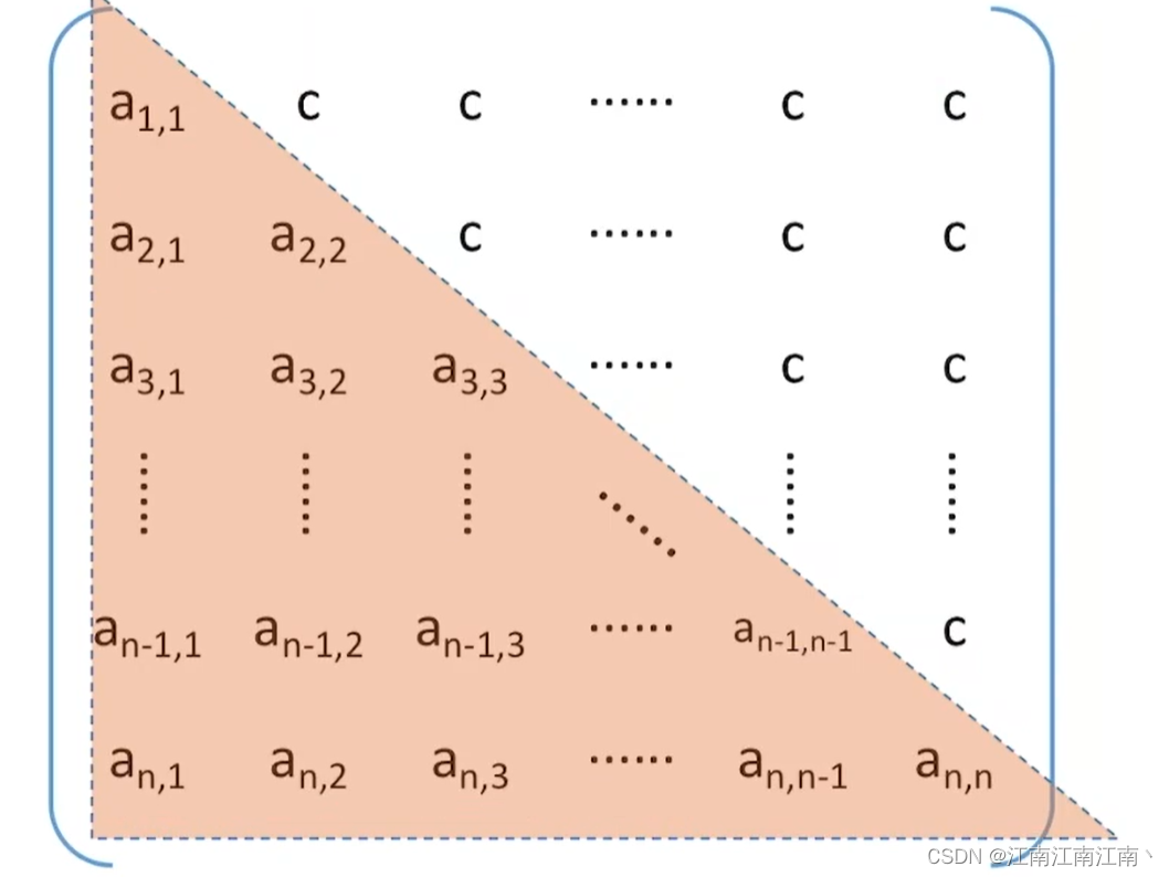 访问三角时,与对称矩阵相同;访问c时,访问数组的最后一个元素c