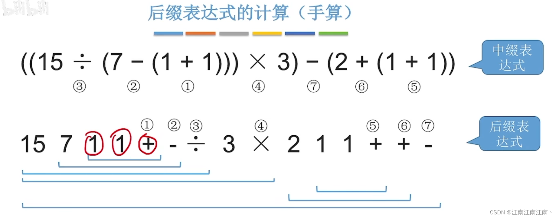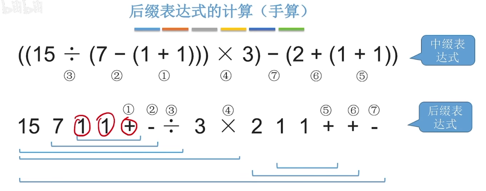 (7)3 15 7 1 1 + - / * 2 1 1 + + -2.2.后缀表达式的计算方法