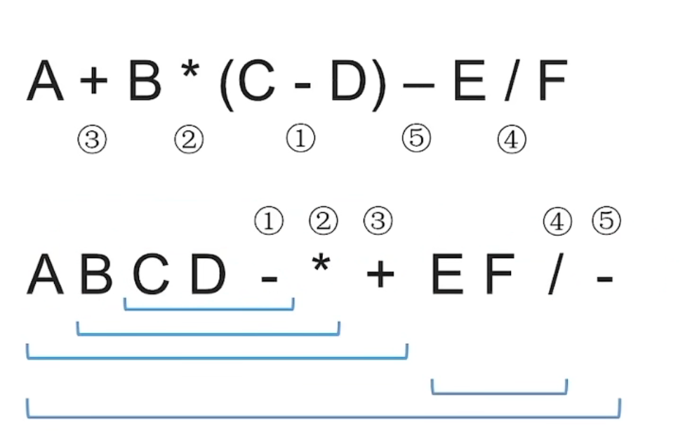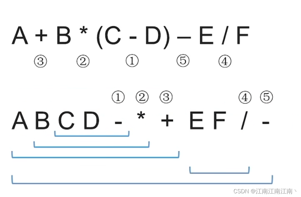 - + a b * c d 中缀表达式:运算符在两个操作数中间