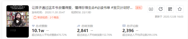 可以看下此类视频“真人口播型”讲述一段书籍里育儿小故事录成视频。这条视频9天时间点赞总数已超过10W;可想而知播放量已经达到了上千万播放;