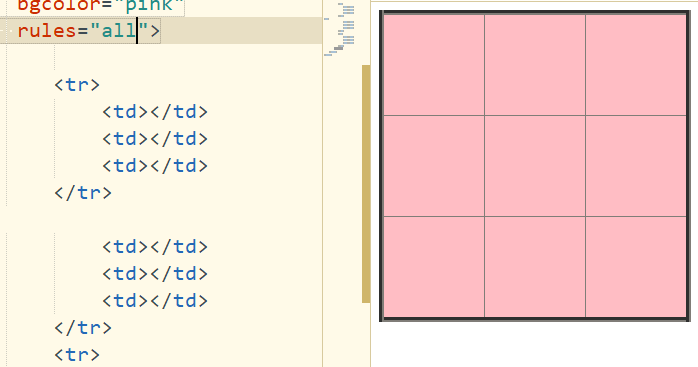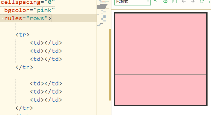 同理,可以得出,在第三行第二个单元格与第三个单元格进行合并时,只需要4个<td></td>标签,并且在第三行的第2个单元格里合并两个单元格