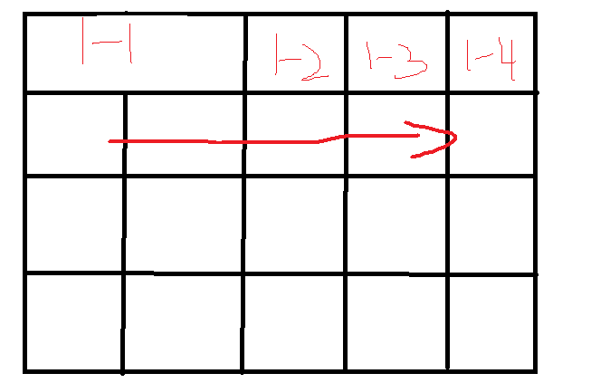 在这个图中可以看到,本来第一行是有5个单元格,但是第一行的第一个单元格与第二个单元格合并在了一起,