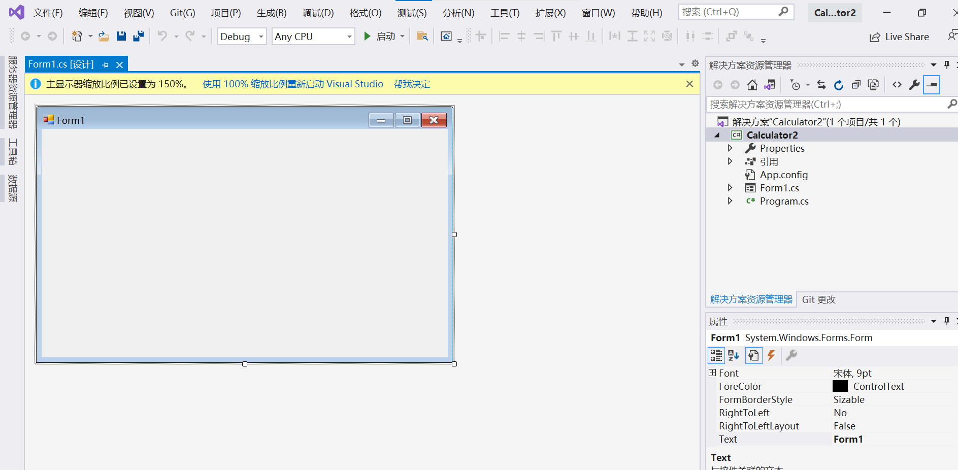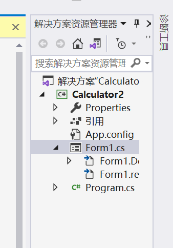 如果不小心关了 Form.cs,可以从右侧的 "解决方案资源管理器"找回