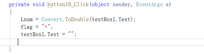 加法”+“按钮设置 :1.获得当前左操作数 ,2.flag 设定为”+“, 3,置空textbox 以便输入右操作数。