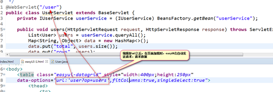 当点击上一页下一页时处理:easyUI会将表格加载数据的url再次请求,并且将当前的页码+1或者-1发送到服务器。参数名称是固定的。