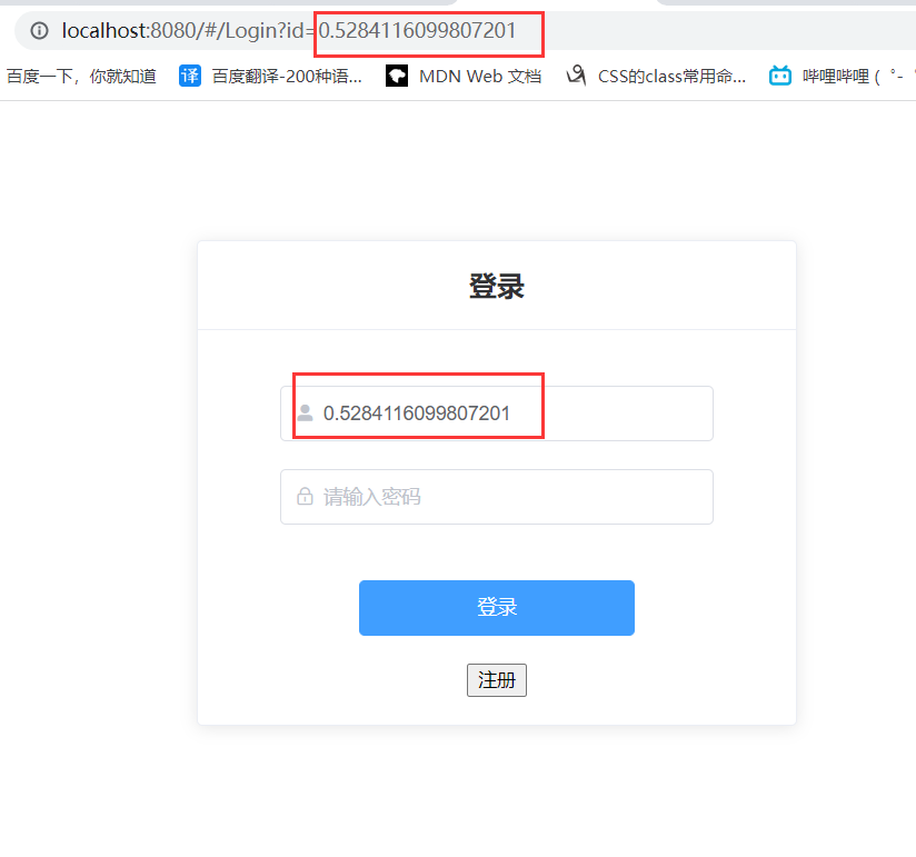 注册组件:生成一个随机数,点击登录的时候,传递参数。