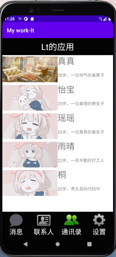 private String[] age={"28岁,一位帅气的美男子","25岁,一位美丽的奇女子","26岁,一位善良的美女子","22岁,一名辛勤的打工人","20岁,秃头且码代码中"};