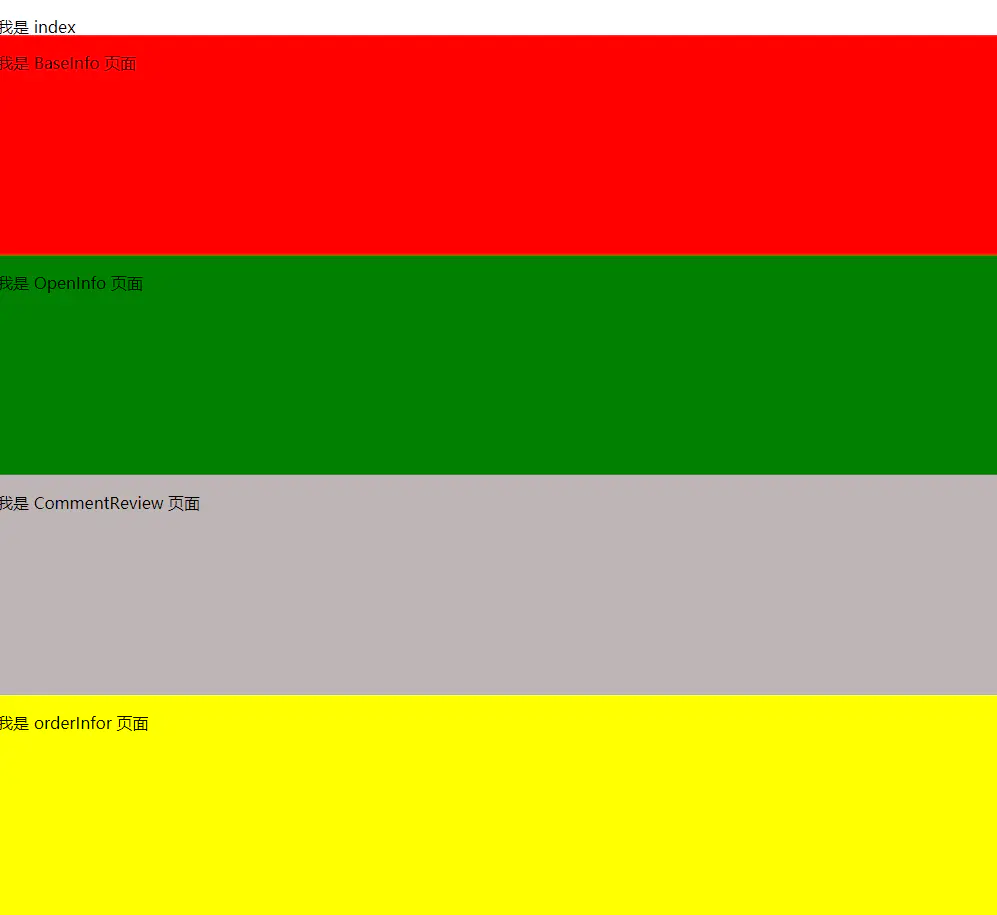 // 其他页面也一样,只有背景色与页面的展示名不同,这就不一一介绍了