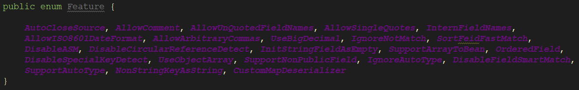 从parseObject()这个方法中我们又看到了一个奇怪的参数 Feature,我们点击进入源码可以发现这其实也是一个枚举类: