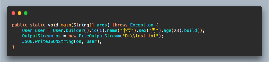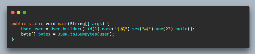 这种方式也可以很好的将 JavaBean 对象转为字节数组,但是代码不免有点多了!而 FastJSON 中也提供了很方便的 API 以供使用: