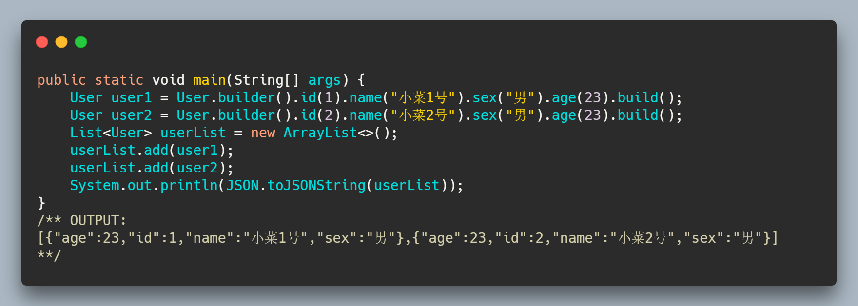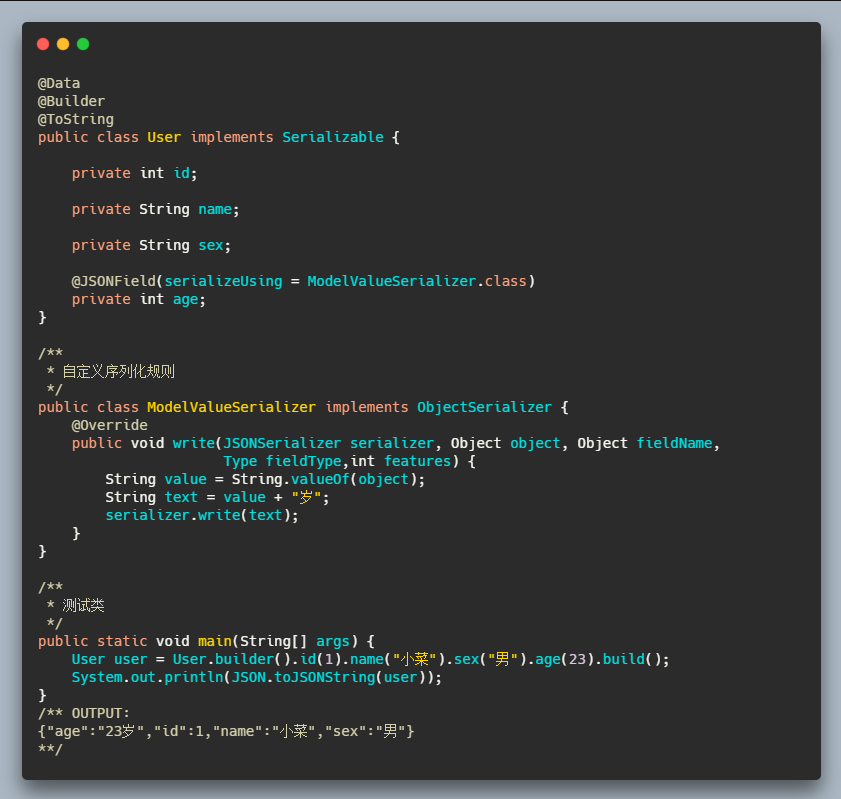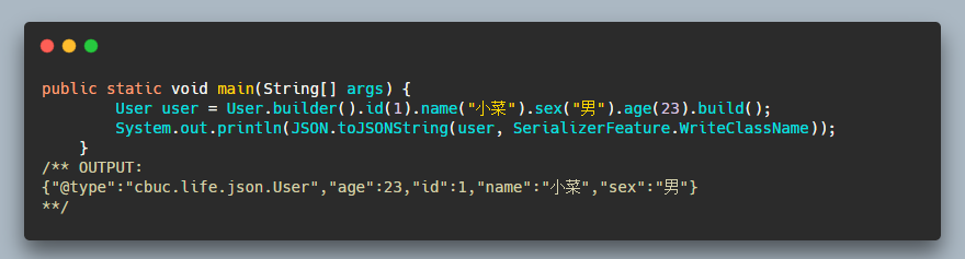 有小伙伴估计想着这两种我平时都用腻歪了,哪里有的着在你这看,小菜一想,言之有理。那就介绍一下 toJSONString 的扩展用法。