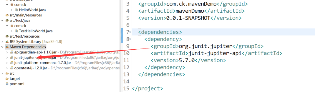 version是定义maven项目当前所处的版本。jar包不需要我们下载拷贝到项目中,之间写配置文件即可。当项目非常大需要大量jar包时,就特别方便,只需要写这种dependency依赖即可。