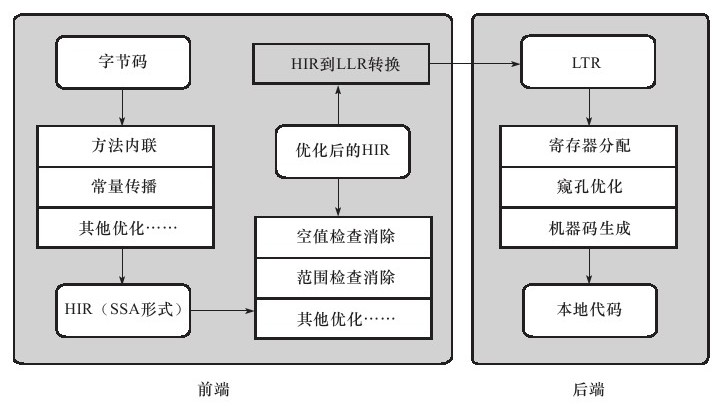 - 在第二个阶段,一个平台相关的后端从HIR中产生低级中间代码表示(Low-Level Intermediate Representation,LIR),而在此之前会在HIR上完成另外一些优化,如空值检查消除、范围检查消除等,以便让HIR达到更高效的代码表示形式。