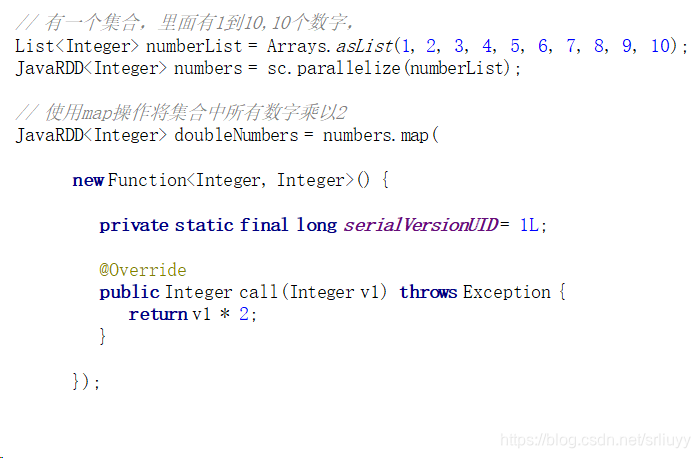 JavaRDD<Integer> multipleNumberRDD = numberRDD.map(