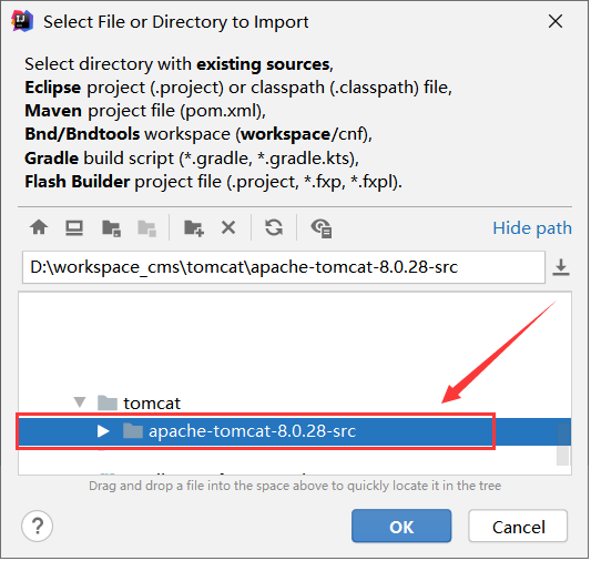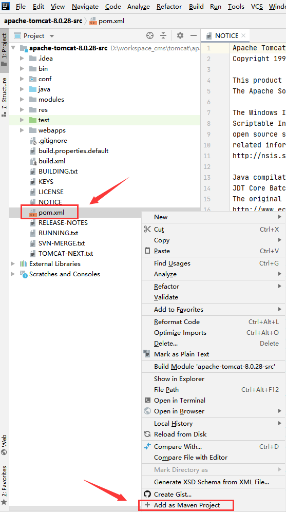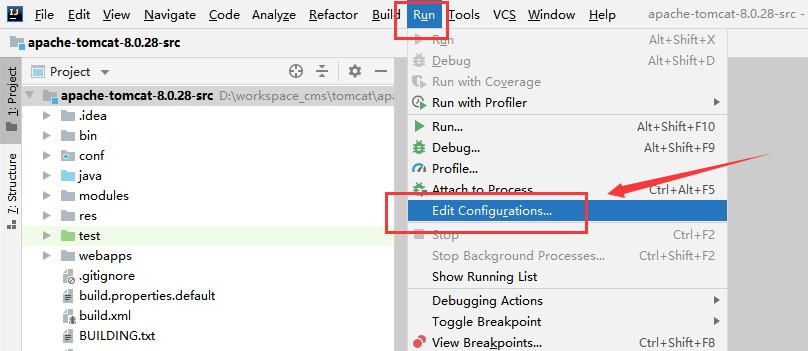 我的项目路径是:D:/workspace_cms/tomcat/apache-tomcat-8.0.28-src