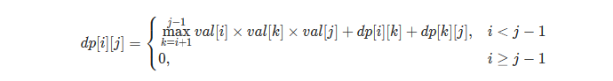 令 dp[i][j]dp[i][j]dp[i][j] 表示填满开区间 (i,j)(i,j)(i,j) 能得到的最多硬币数,那么边界条件是 i≥j−1i \geq j-1i≥j−1,此时有 dp[i][j]=0dp[i][j]=0dp[i][j]=0。