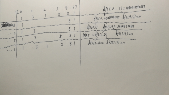 coins = 3*1*5 + 3*5*8 + 1*3*8 + 1*8*1 = 167