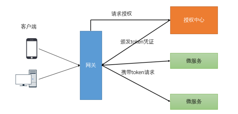 如上图,对于验证用户是否已经登录鉴权的过程可以在网关层统一检验。检验的标准就是请求中是否携 带token凭证以及token的正确性。