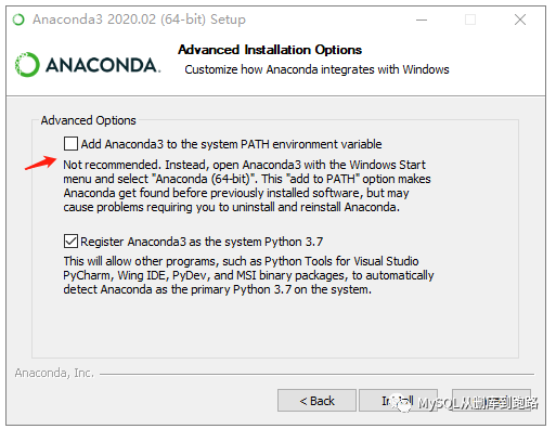 4.双击下载好的安装器开始安装anaconda,其中部分选项如下选择即可