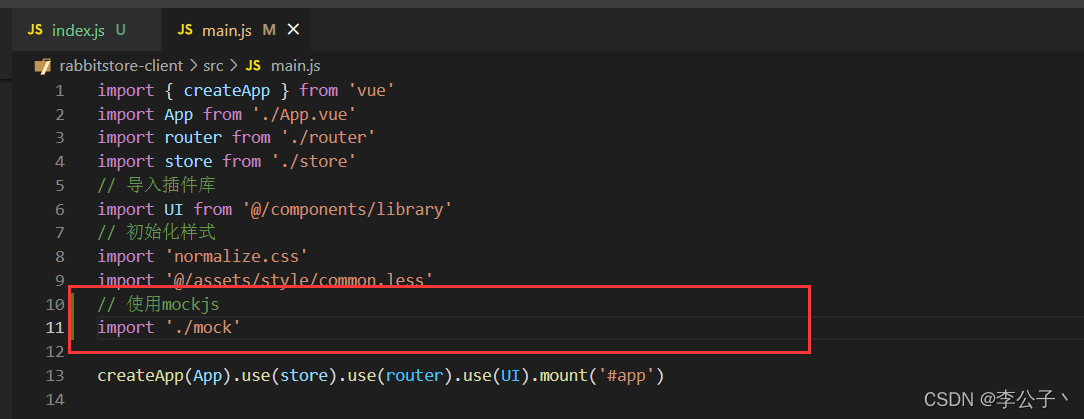 // 在入口文件mian.js中使用mockjs