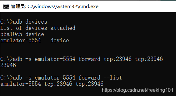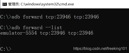 在打开一个 cmd 窗口,执行 端口转发:adb forward tcp:23946 tcp:23946