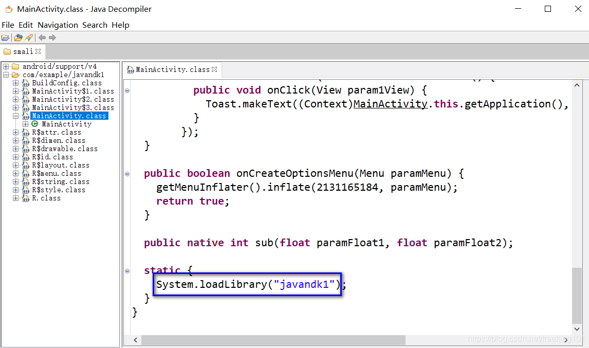 ( 或者 ctrl + s ,ctrl + f ,搜索 对应的so,看有没有加载 )