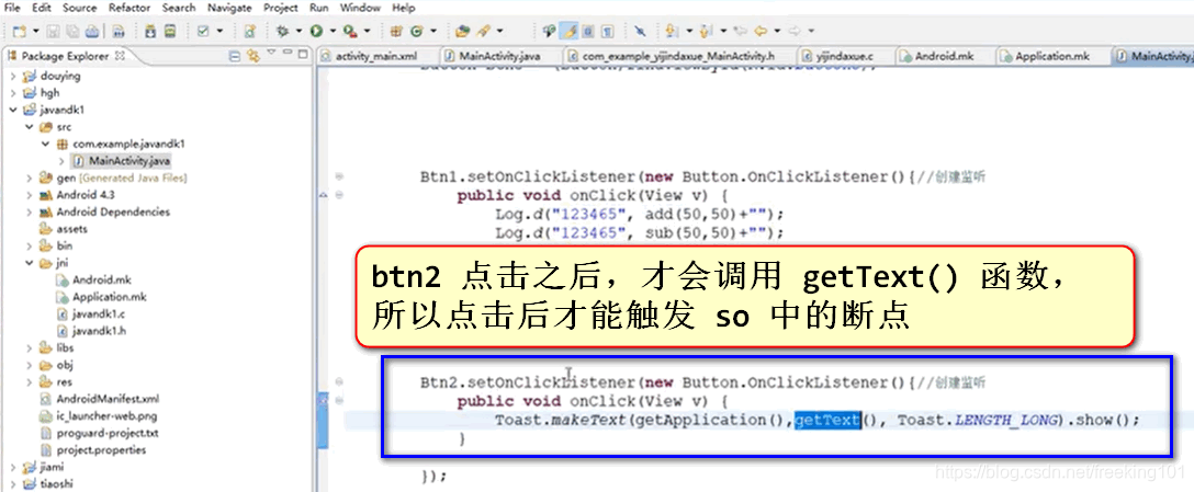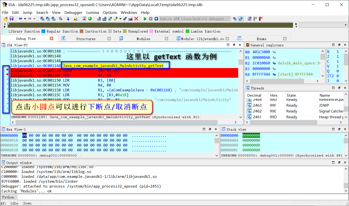 跳转到 so库中函数对应位置,这里以 getText 函数为例进行跳转,并 下断点