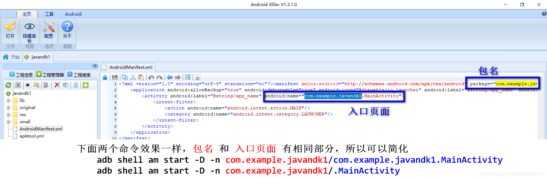 (可以使用 AndroidKiller 找到 AndroidManifest.xml)