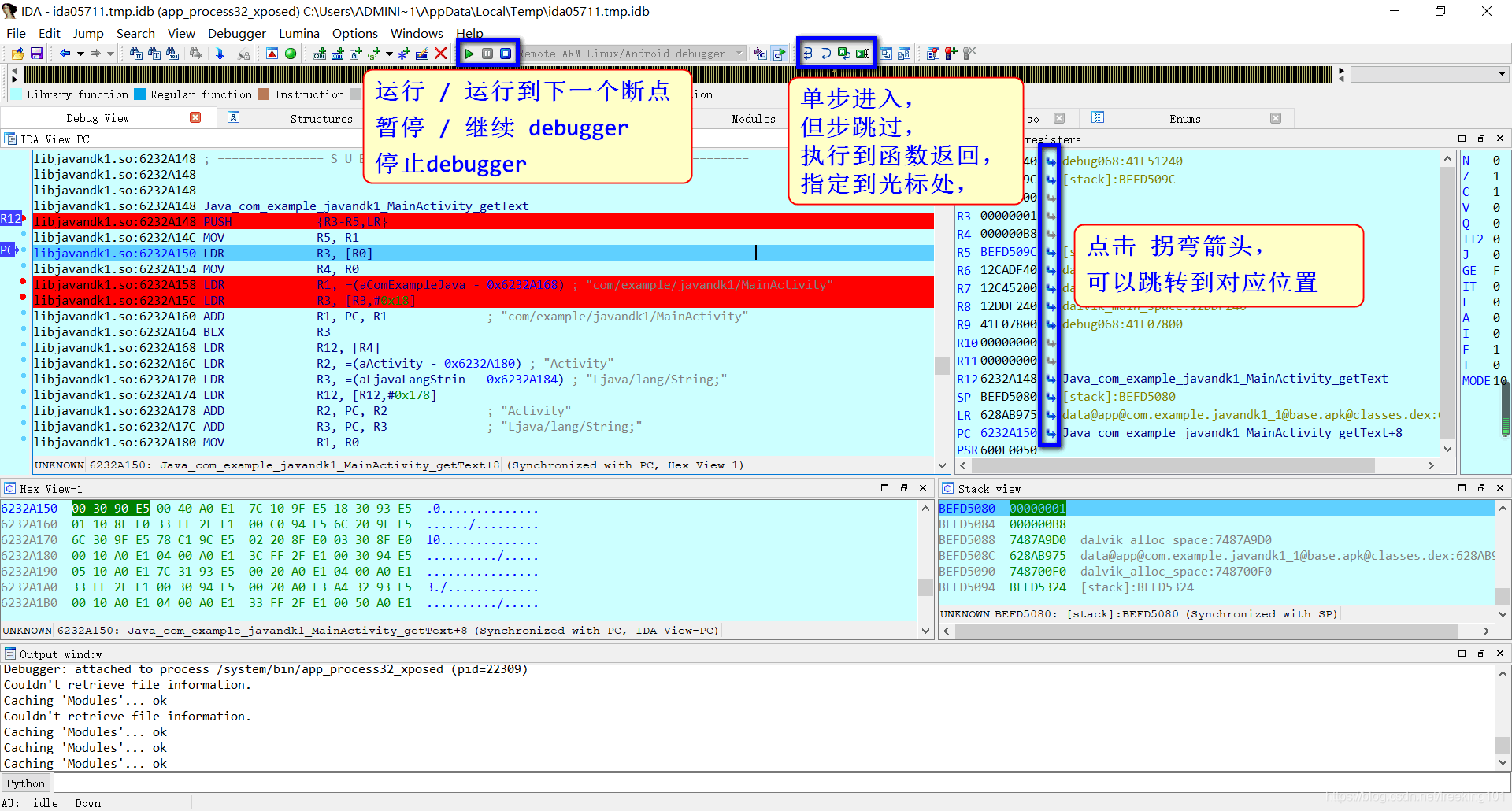 ( 动态调试的时候不需要再使用 IDA 打开 so 文件了,但是需要 IDA 附加到对应进程。 )