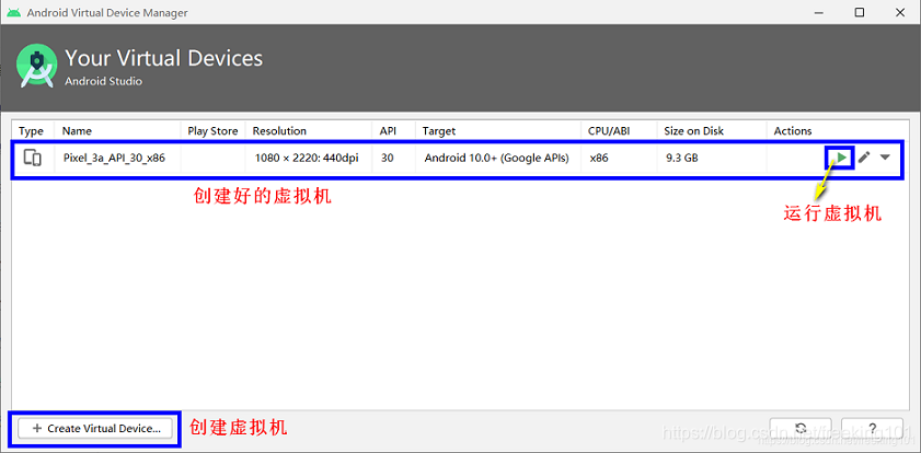 通过 Android Studio 的 AVD Manager 新建一个虚拟机