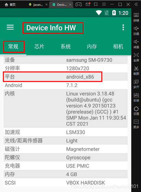这里以 雷电模拟器 为例,首先确定 雷电模拟器 的 安卓版本,安装 device info hw.apk ( https://www.cr173.com/soft/845060.html ),打开 app 即可查看 安卓平台类型