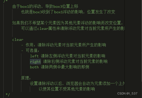 ⑦元素这只浮动之后,会完全从文档流中脱离,不再占用文档流的位置,所以元素下边的还在文档流中的元素会自动向上移动